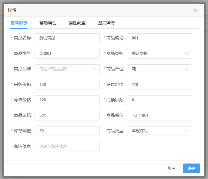 商品图文详情 图文详情是记录商品的详细信息的,零售名称是在零售终端中显示的名称,图片及图文详情为记录商品详情的,图片内容是在零售终端中展示使用。
