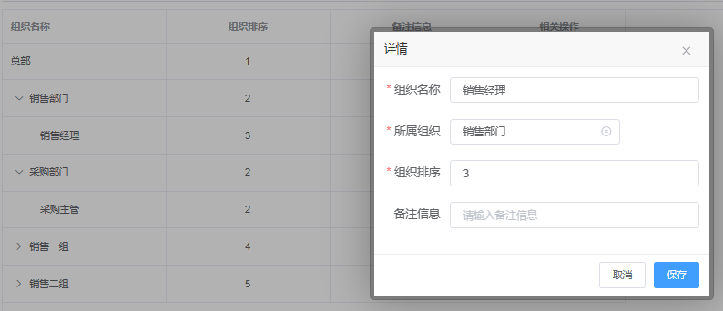 组织结构是指企业内部的层次和关系,它描述了企业各部门、岗位和人员之间的组织和层级关系。组织结构在ERP系统中起着重要的作用,它决定了系统中数据的组织方式、权限分配和业务流程的设计。组织结构通常以层次结构的形式表示,其中顶层是企业级别,下面是不同的部门、分支机构和团队。每个部门通常有一个部门负责人或经理,他们负责管理该部门的业务活动和人员。系统中 “组织机构” 同为多级层次,增添选择的“所属组织“ 可理解为该组织(部门)下的机构。 常见的部门包括人力资源、财务、销售、采购、生产、仓库等,部门下可组建小组,车间,例如:销售部门下可分配为 销售一组、销售二组等。