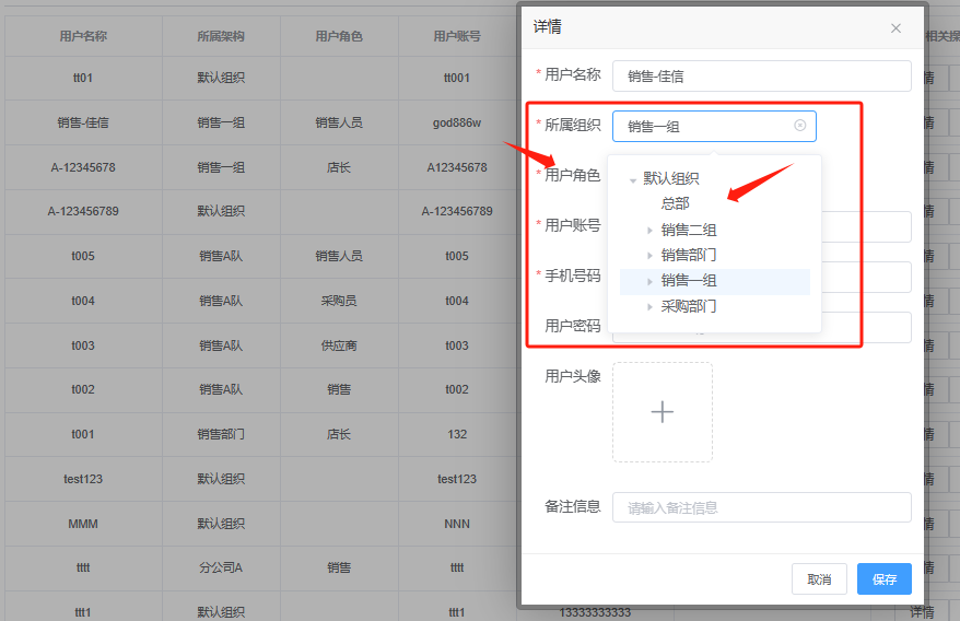 用户管理是创建登陆系统的用户,新增时需注意选择默认组织是不能选择任何角色的、需要选择默认组织下的其他组织。管理员可以为每个用户分配适当的角色或权限级别,以控制其对不同模块、功能或数据的访问权限。