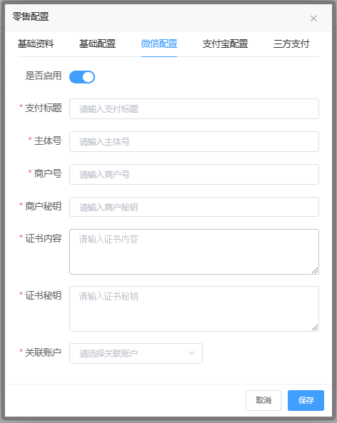 自动小票,开启后在零售终端中结账后会自动打开小票打印界面。 积分比例,可以设置零售商品价格兑换的积分比例,这里填写的是1:填写的数字作为积分。 兑换比例,可以设置零售模块中积分兑换单的兑换比例,这里填写的是1:填写的数字作为兑换的积分。