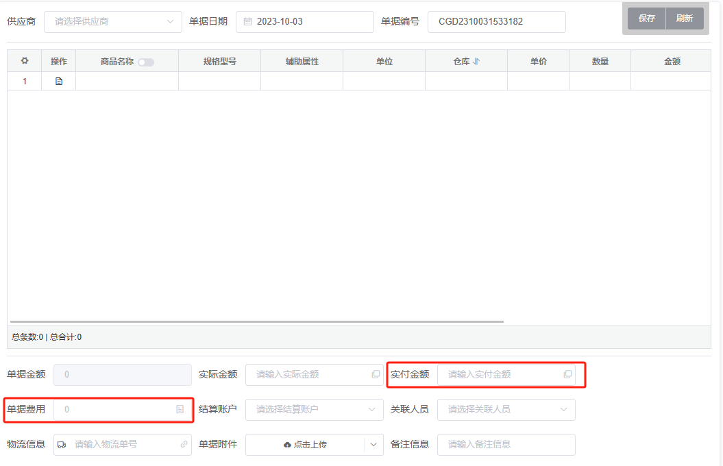 采购付款表记录了所有采购、采退单据中的资金信息,各单据的单据金额、实际金额、单据付款、应付款余额、付款率、核销状态等各类信息。