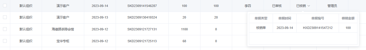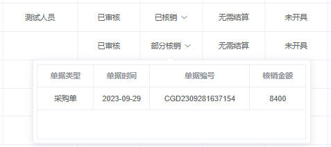 实际操作: 操作时先选择底部需要操作的核销类型,然后选择客户或供应商,点击操作按钮,选择对冲的至少两个或多个单据进行对冲核销,然后填写核销金额,或者可点击核销金额后“自动”按钮,系统将自动计算核销金额,填写完成后保存审核即可完成核销操作,核销单报表中可以查看所有保存的核销单据,左上角搜索可以多维度查询所有单据,审核完成后所对应的核销单据状态也会随之改变。核销成功后,对应单据将同步更新核销状态,已核销则为订单金额交付完成。