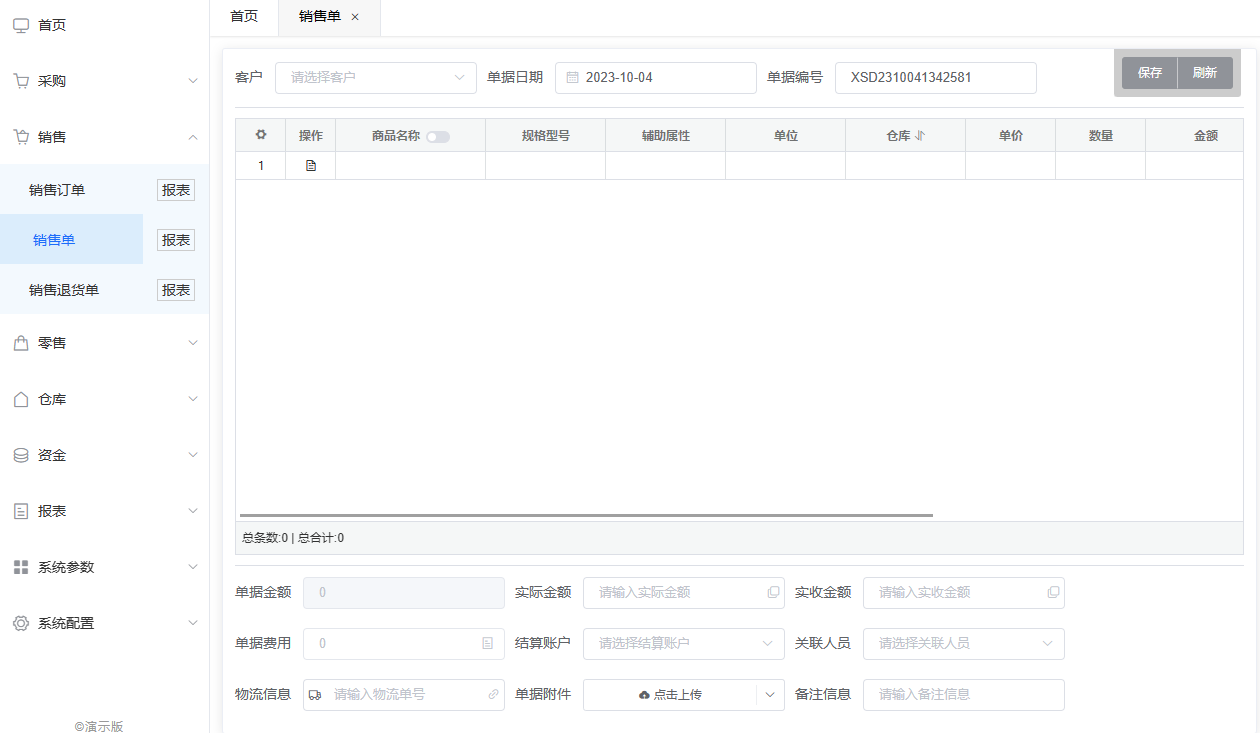 常规零售与销售单类似,顶部客户、日期、编号,底部实际金额、结算账户 都为必填项,为适用于零售销售模式,常规零售底部增加了单据积分、结算方式、结算单号三项 ,其中单据积分、结算方式为必填项,结算单号为选填项,常规零售单据的其他操作与销售单一致。