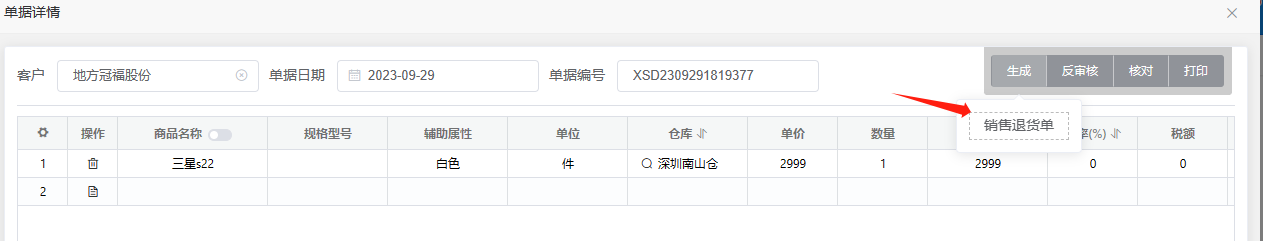 销退:销售退货单