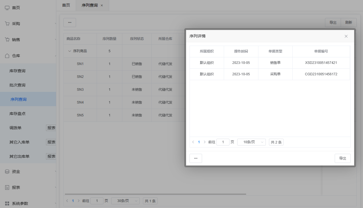 序列号查询是对具有唯一序列号的商品进行查询和管理。序列号查询功能允许用户根据序列号或其他相关条件,追踪和查询特定序列号商品的相关信息,如:所属仓库、序列状态、出入库详情等。